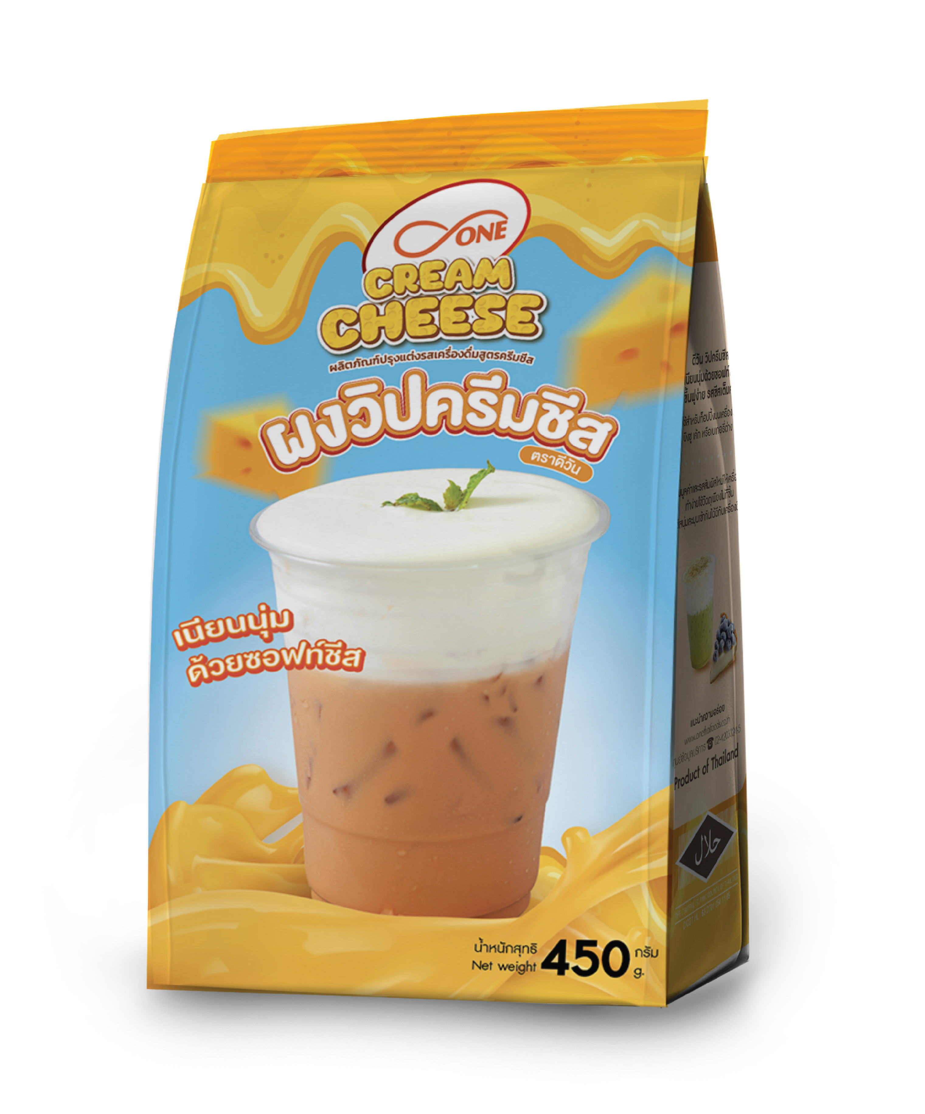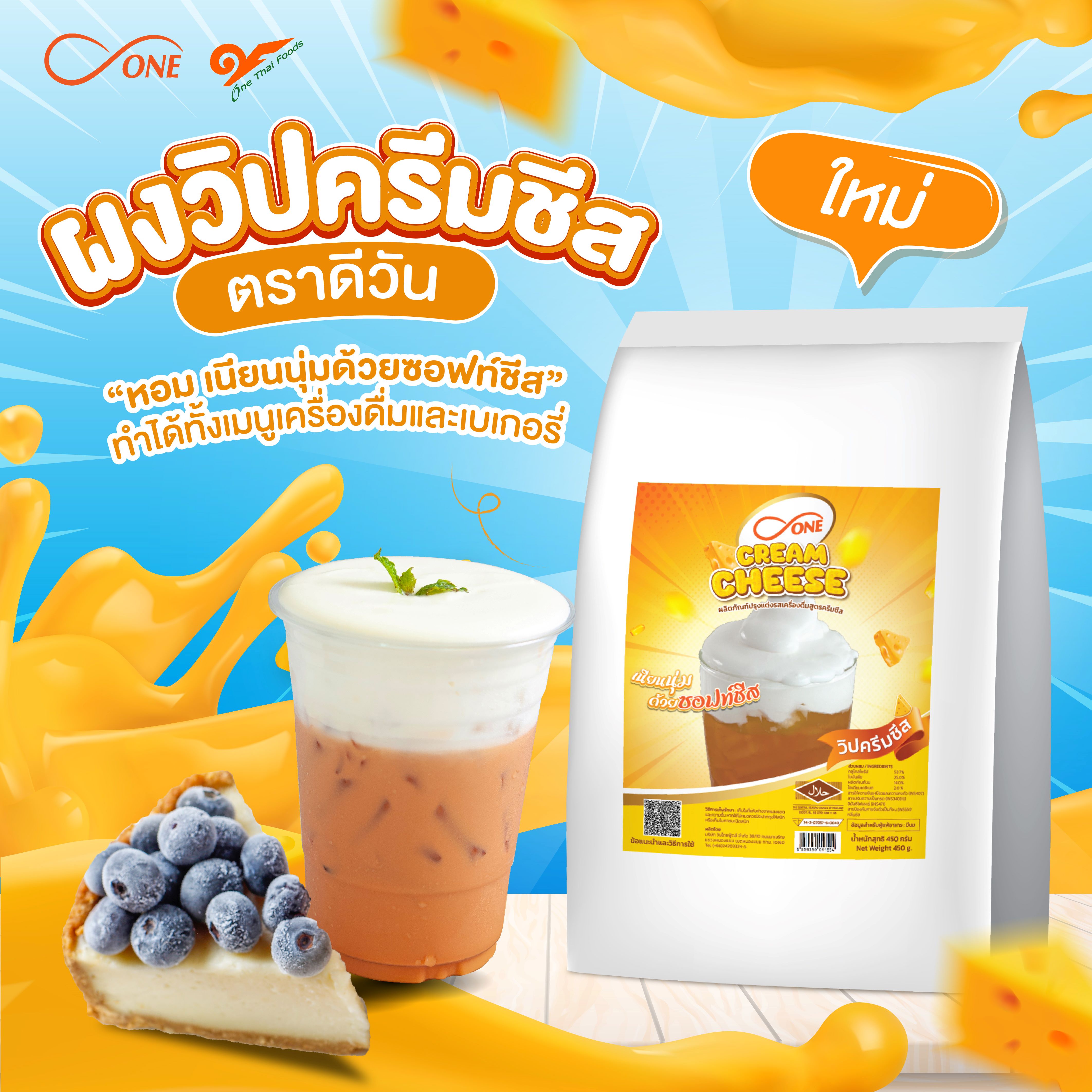 ผงวิปครีมชีส ตรา ดี-วัน (d-ONE) 1 ถุงสามารถชงเครื่องดื่มได้ประมาณ 15 แก้ว (ขนาด 22Oz)