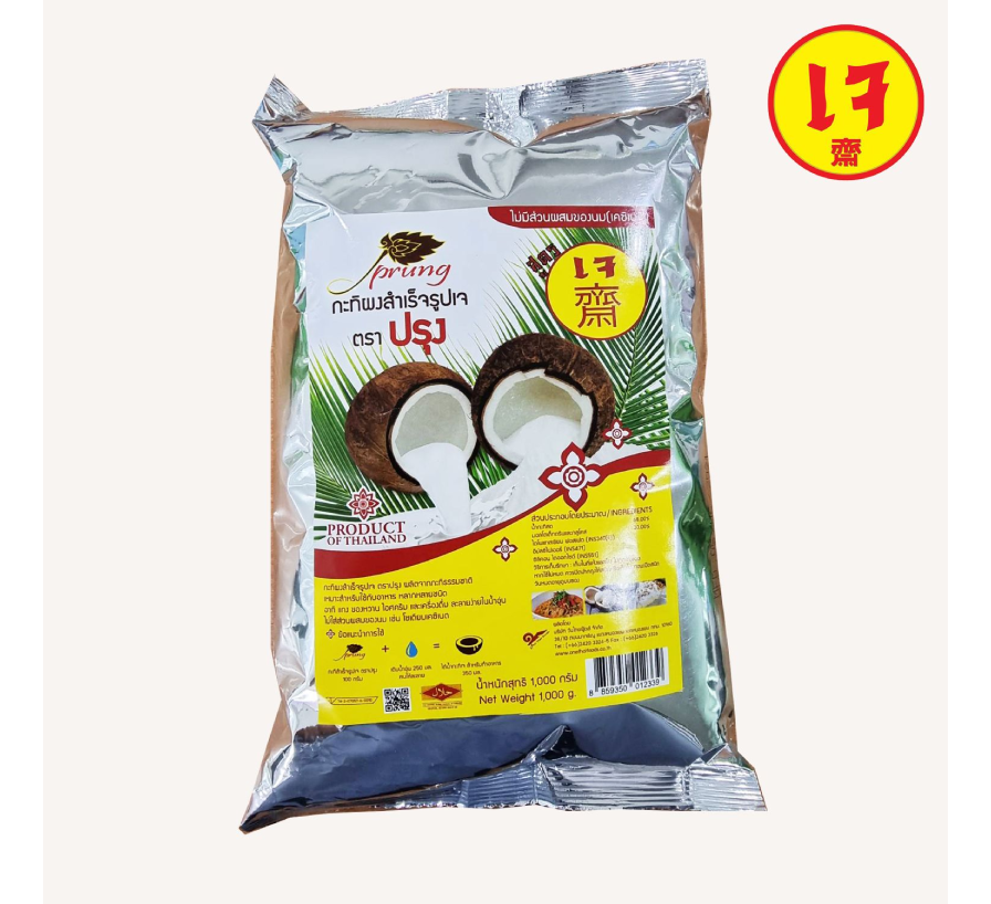 กะทิผง(สูตรเจ)ตรา "ปรุง"เหมาะสำหรับคนทานเจ ผลิตจากกะทิธรรมชาติ เหมาะใช้กับอาหารหลากหลายชนิดเช่น แกง เค้ก ไอศกรีม และเครื่องดื่ม ละลายง่ายในน้ำอุ่นสามารถละลายในน้ำอุ่นเพื่อเป็นหัวกะทิ หรือ หางกะทิได้ตามความต้องการ*ไม่มีส่วนผสมของนม เช่น โซเดียมเคซิเนต